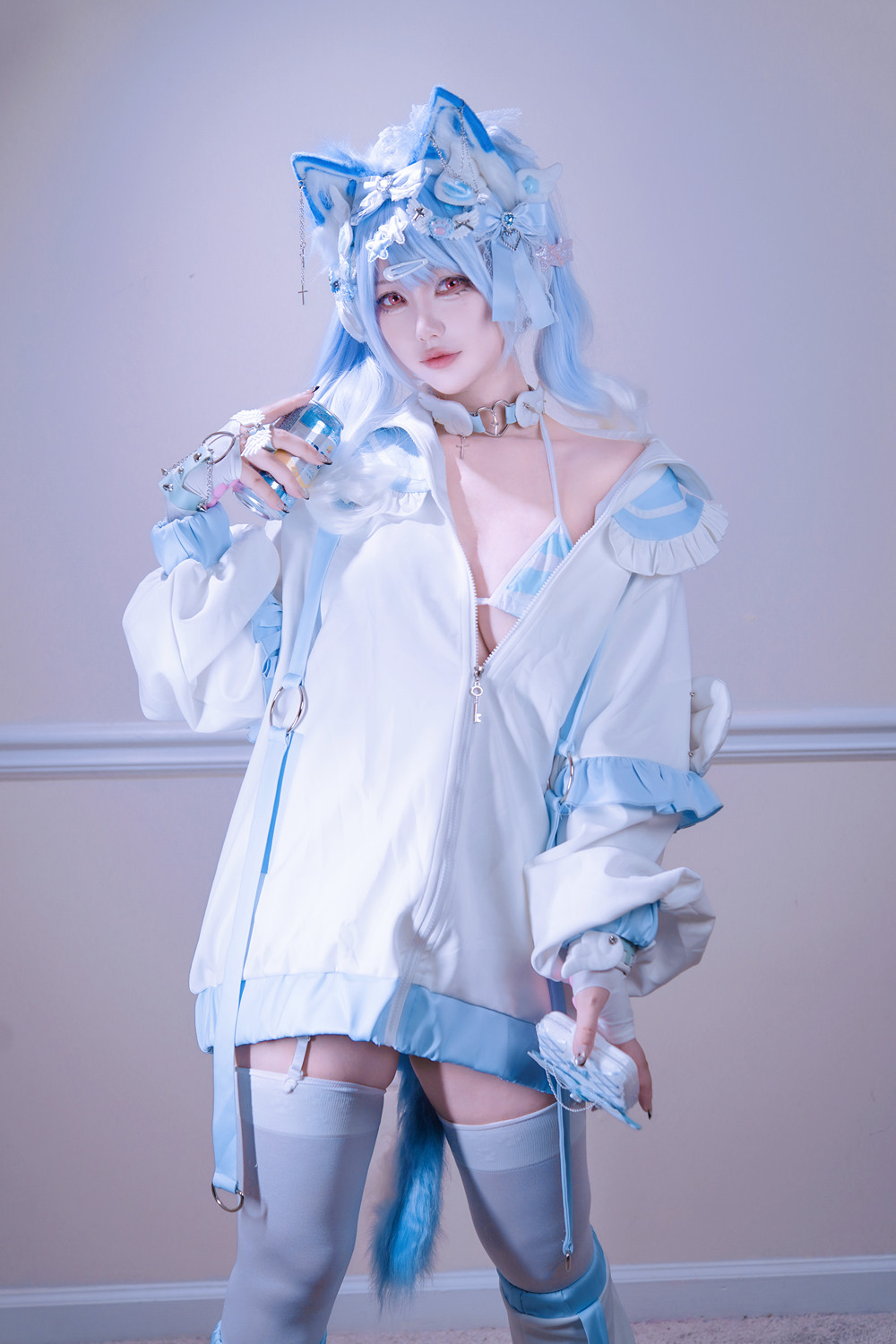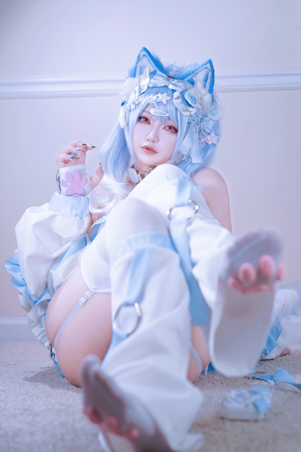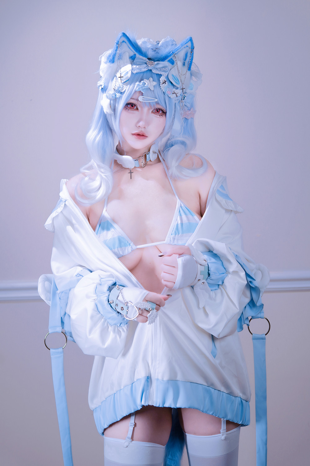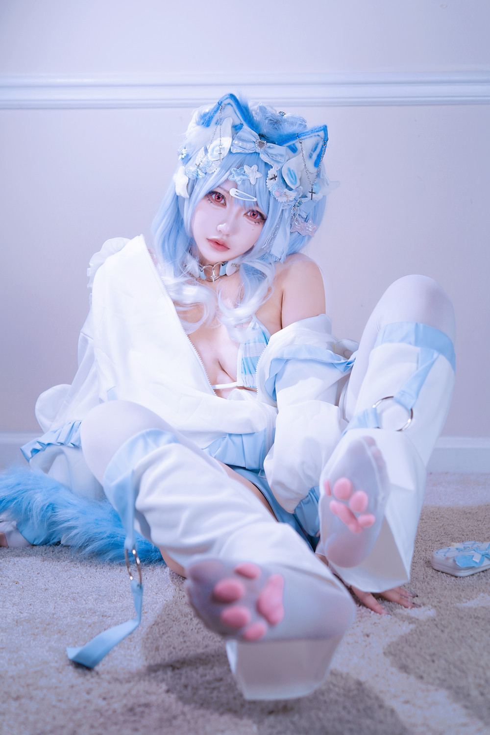 Cosplay 狐洛洛子 – 水色猫猫头