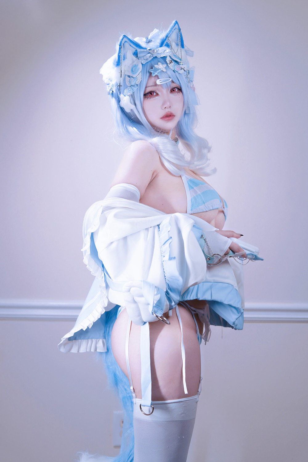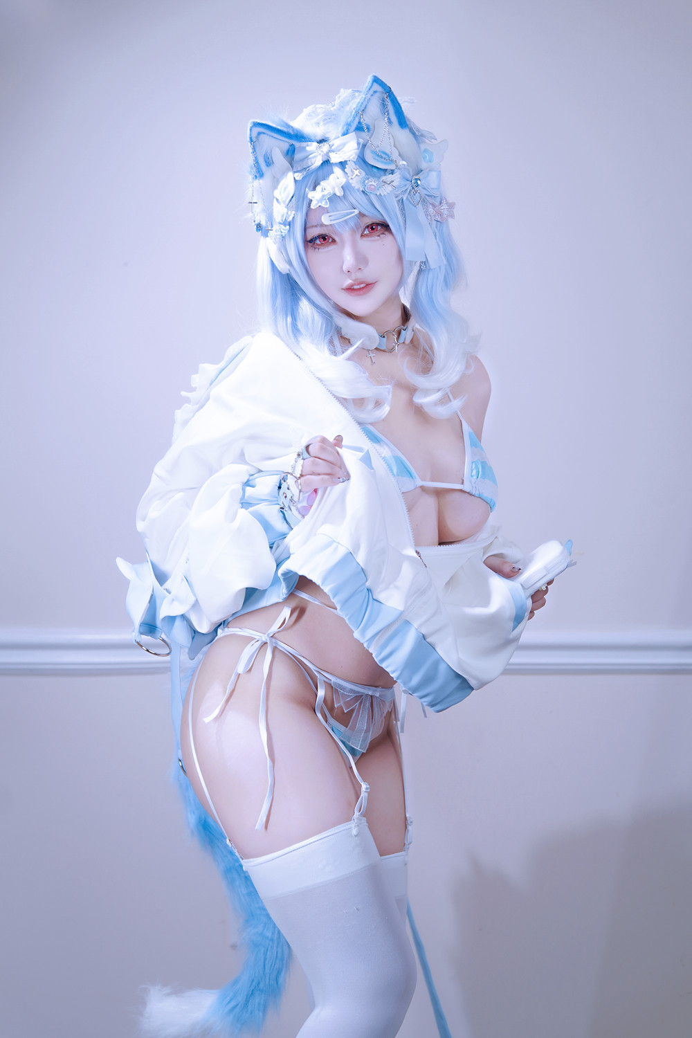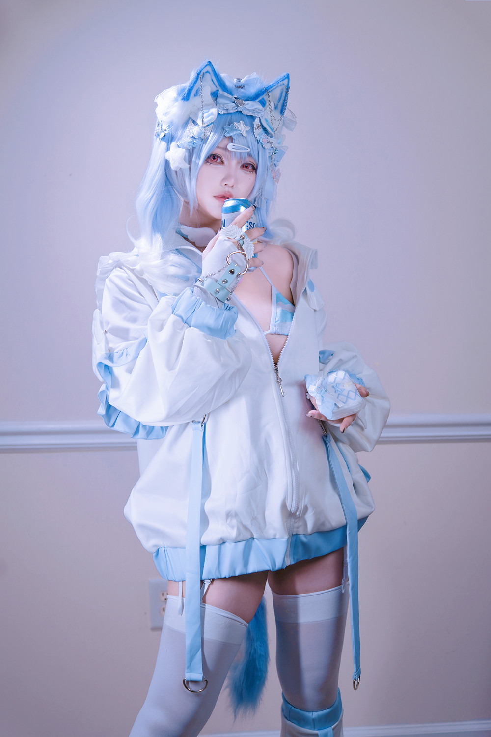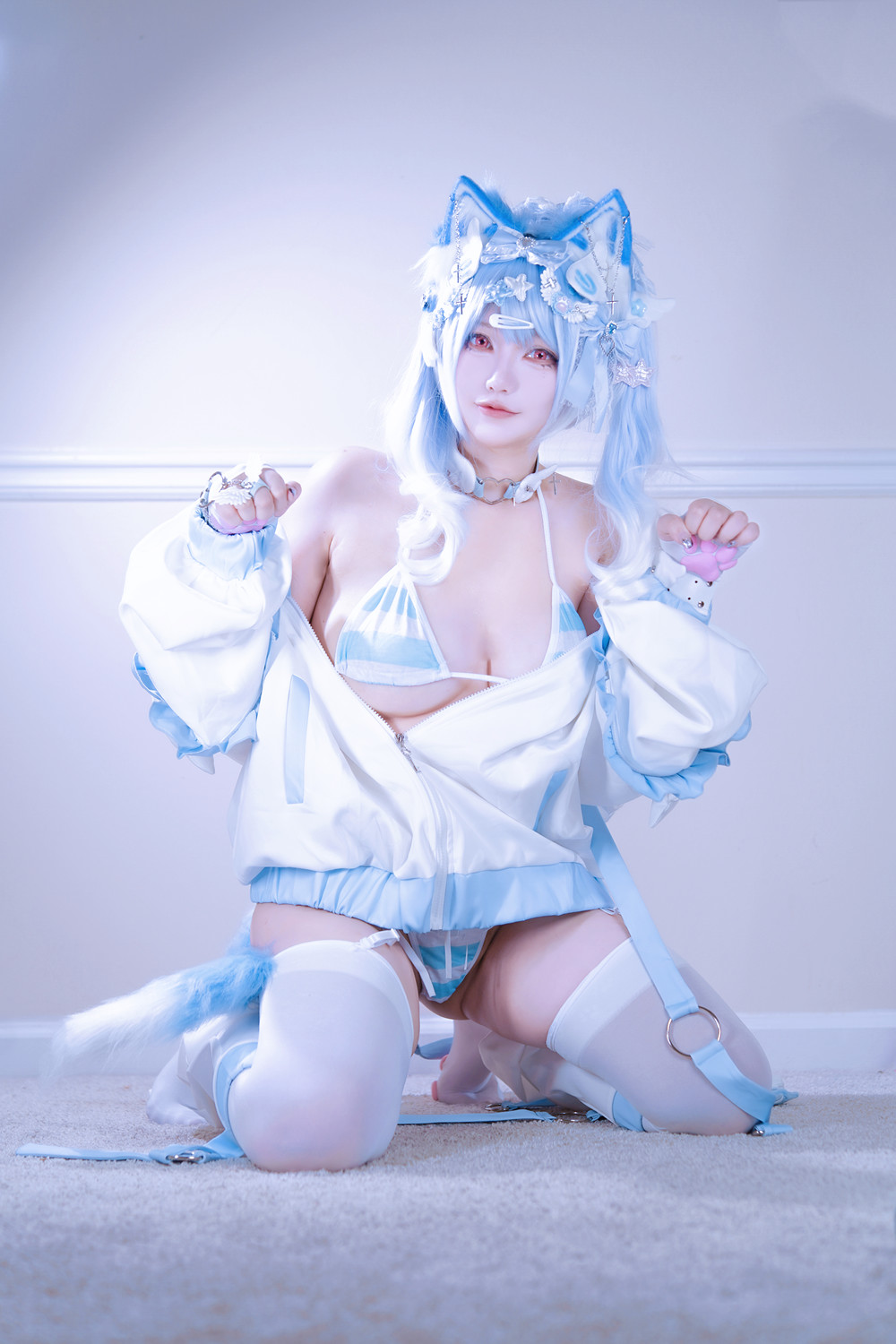 Cosplay 狐洛洛子 – 水色猫猫头