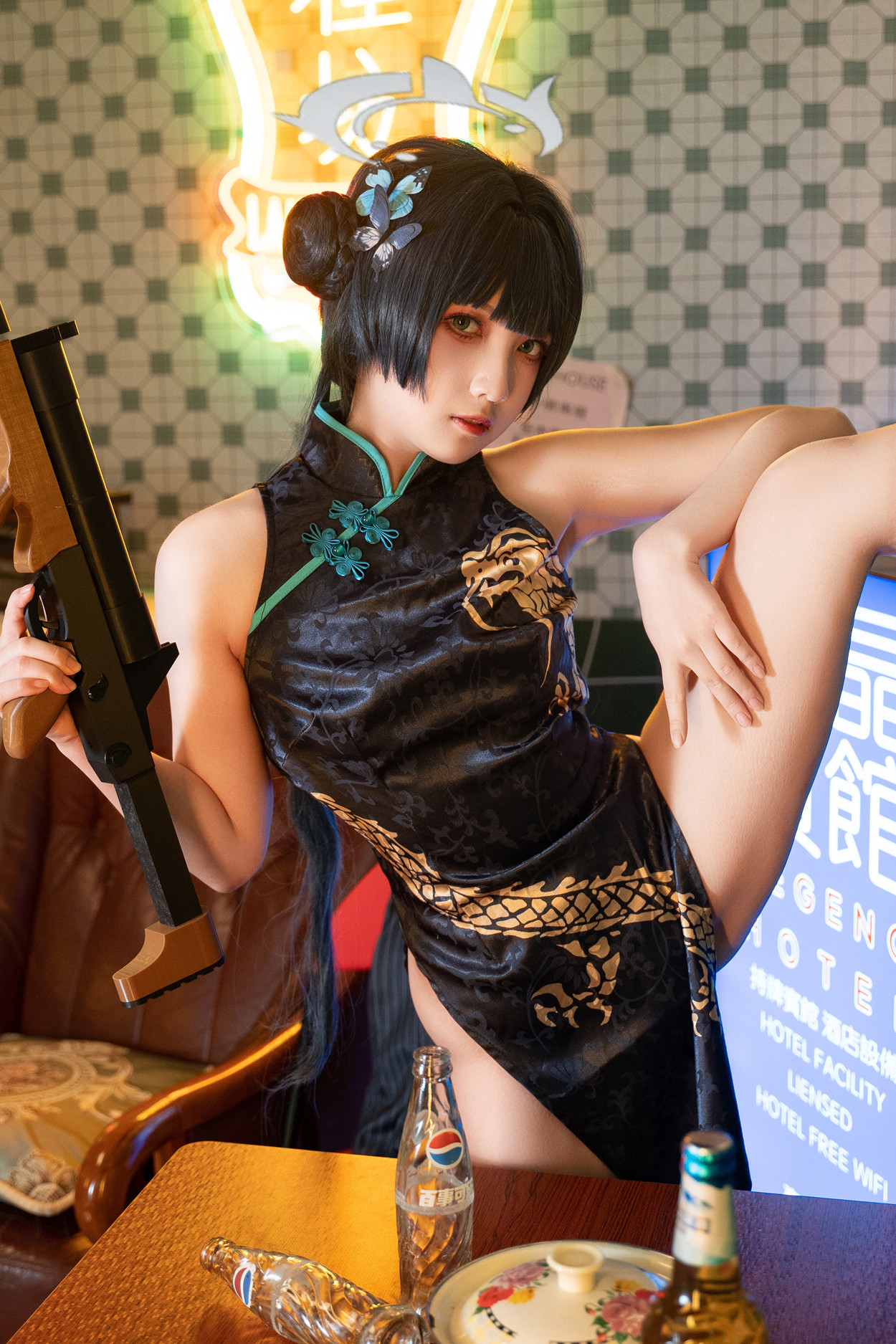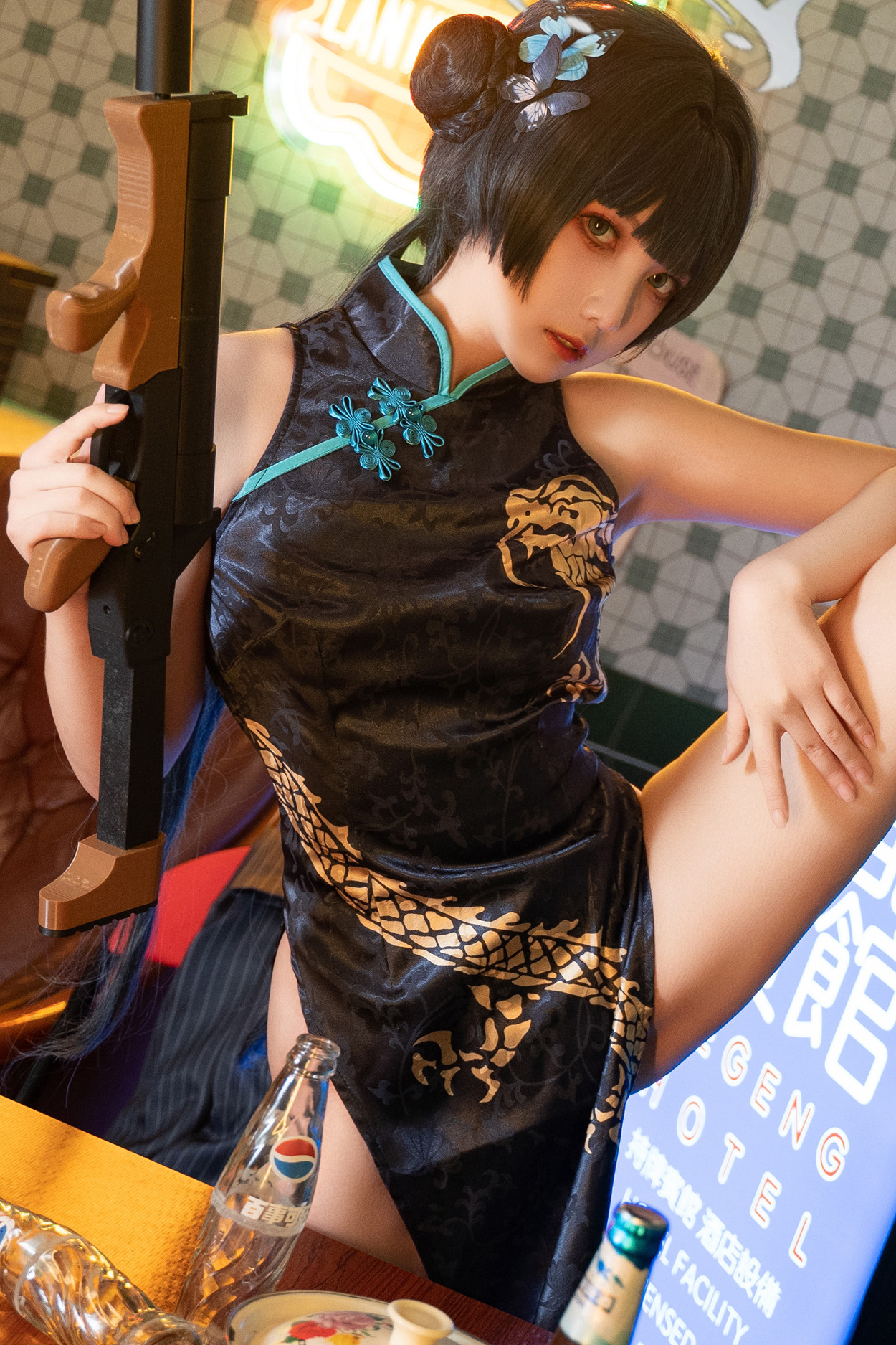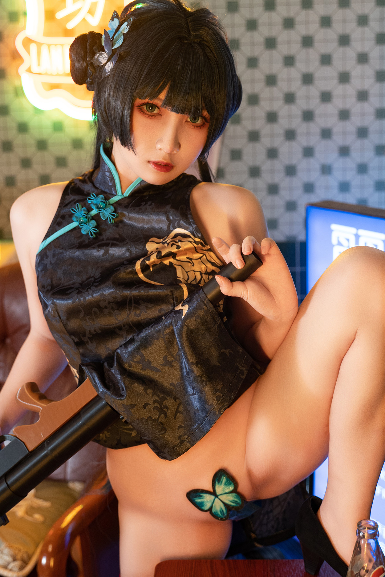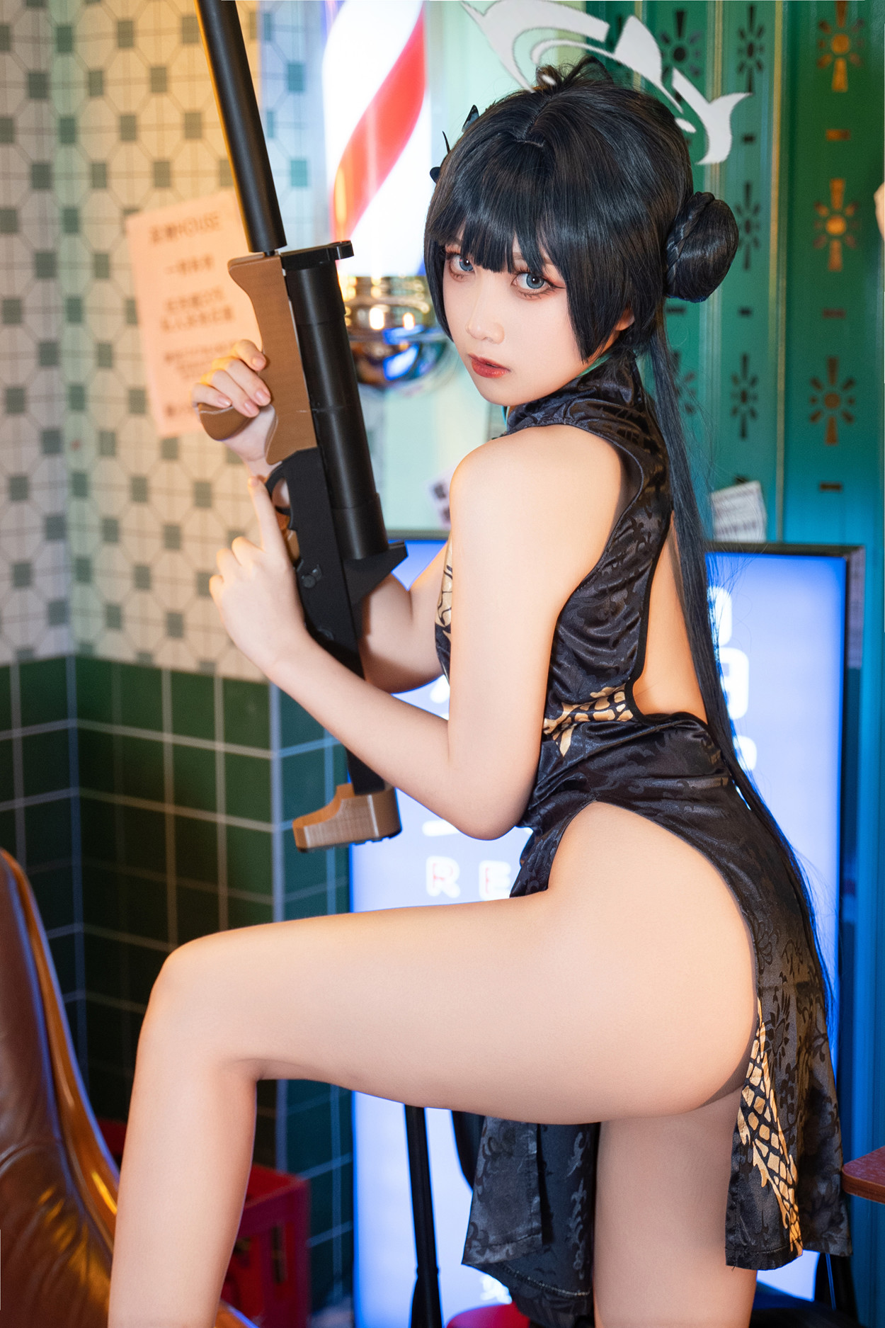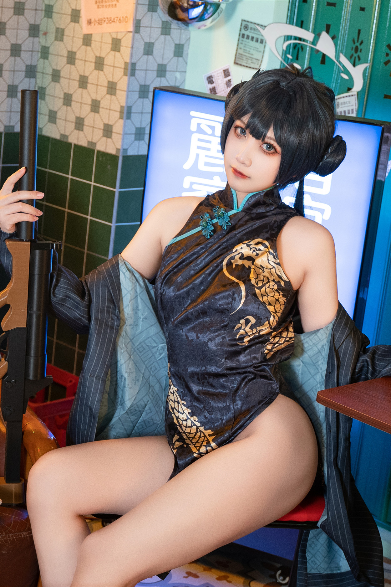 Cosplay 桜井宁宁 黑纱旗袍 Set.01