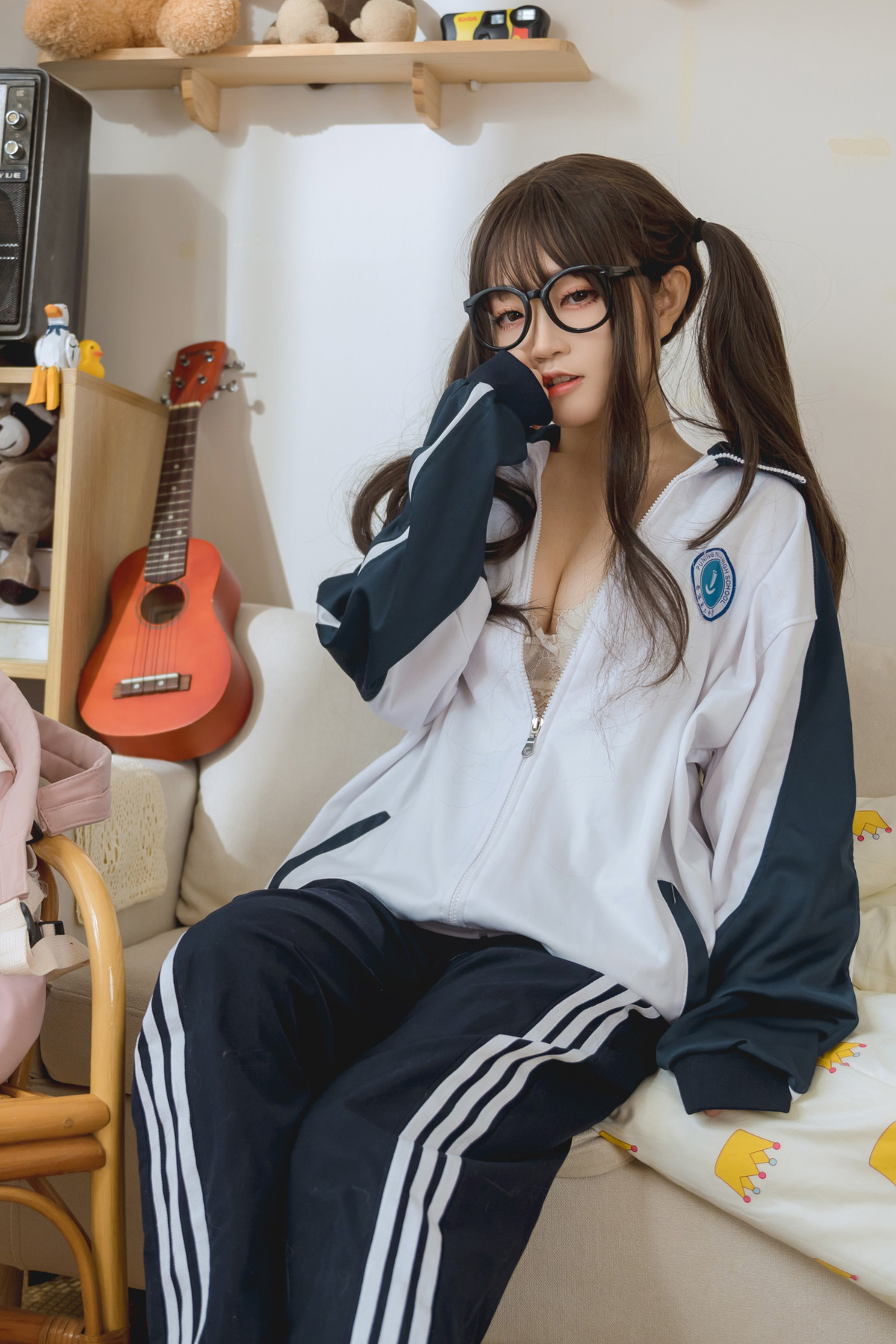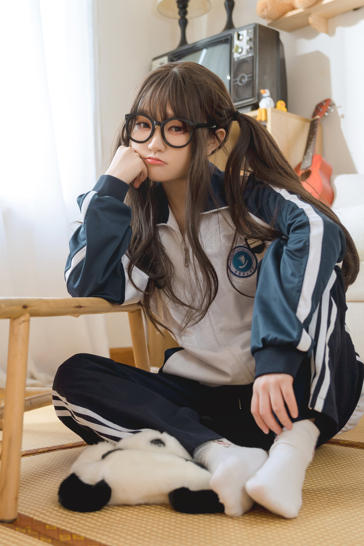 Cosplay 神沢永莉 半双马尾体操服大腿袜