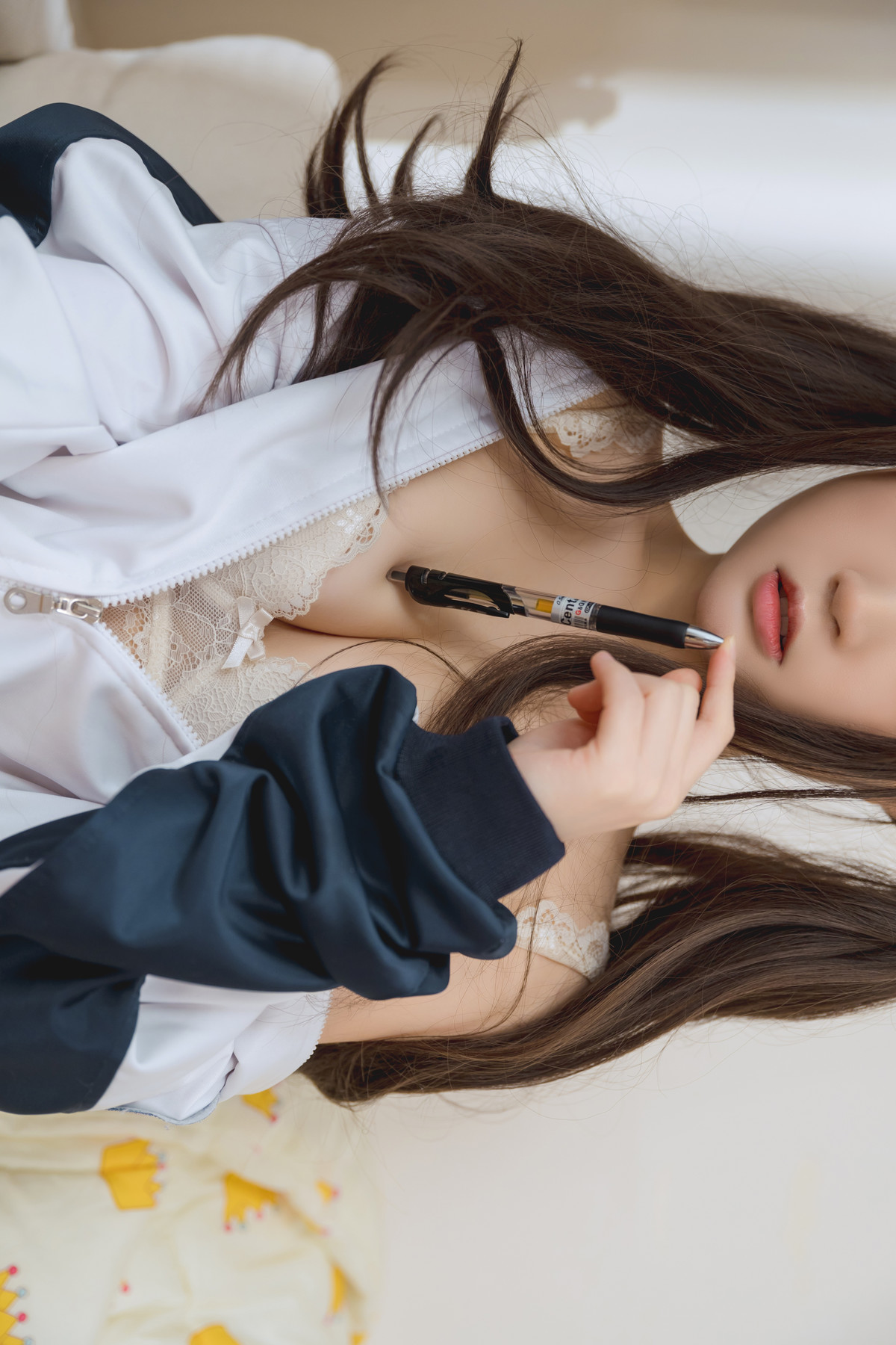 Cosplay 神沢永莉 前开卫衣黑丝牛仔裤